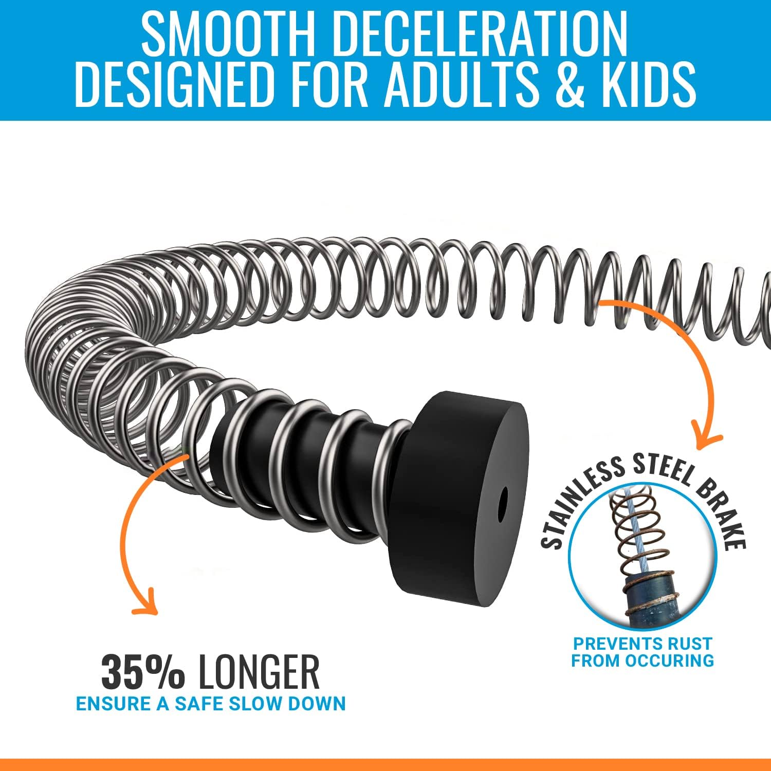 ✔ SAFEST SPRING BRAKE ... We provide a longer 7.5' brake with rubber ends that wont crack compared to plastic ends. The smooth 7.5' spring brake ensures your children are safe at all time